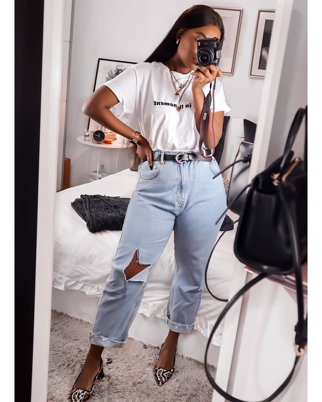 For a stylish brunch outing with friends, opt for a casual yet chic look. A pair of high-waisted jeans, a tucked-in graphic tee, and white sneakers make for a trendy and comfortable ensemble. Accessorize with statement earrings and oversized sunglasses to add a touch of glamour to your laid-back outfit.