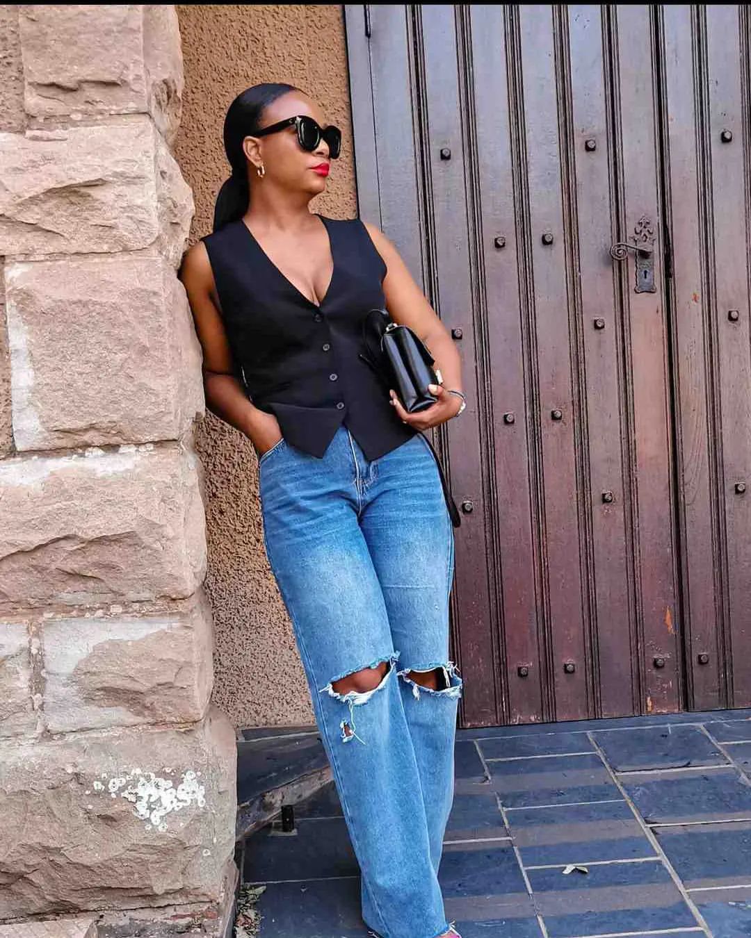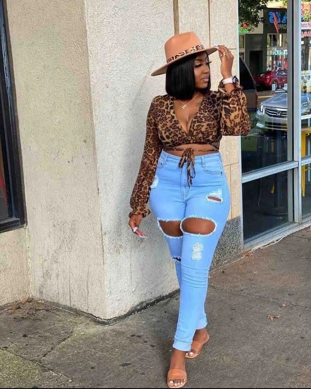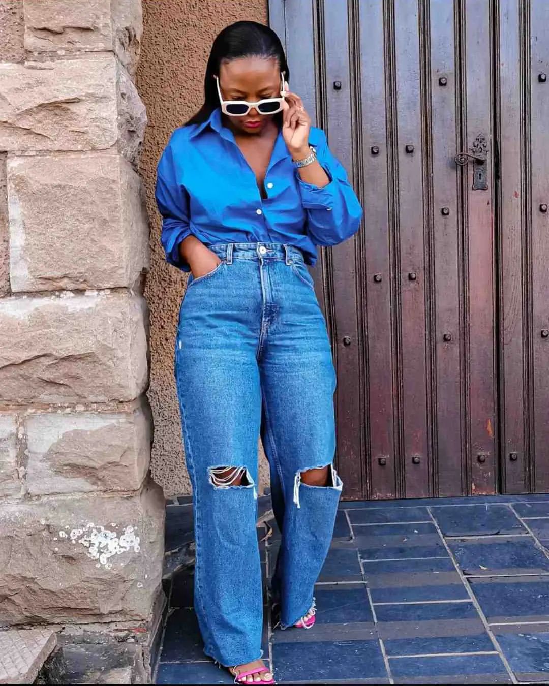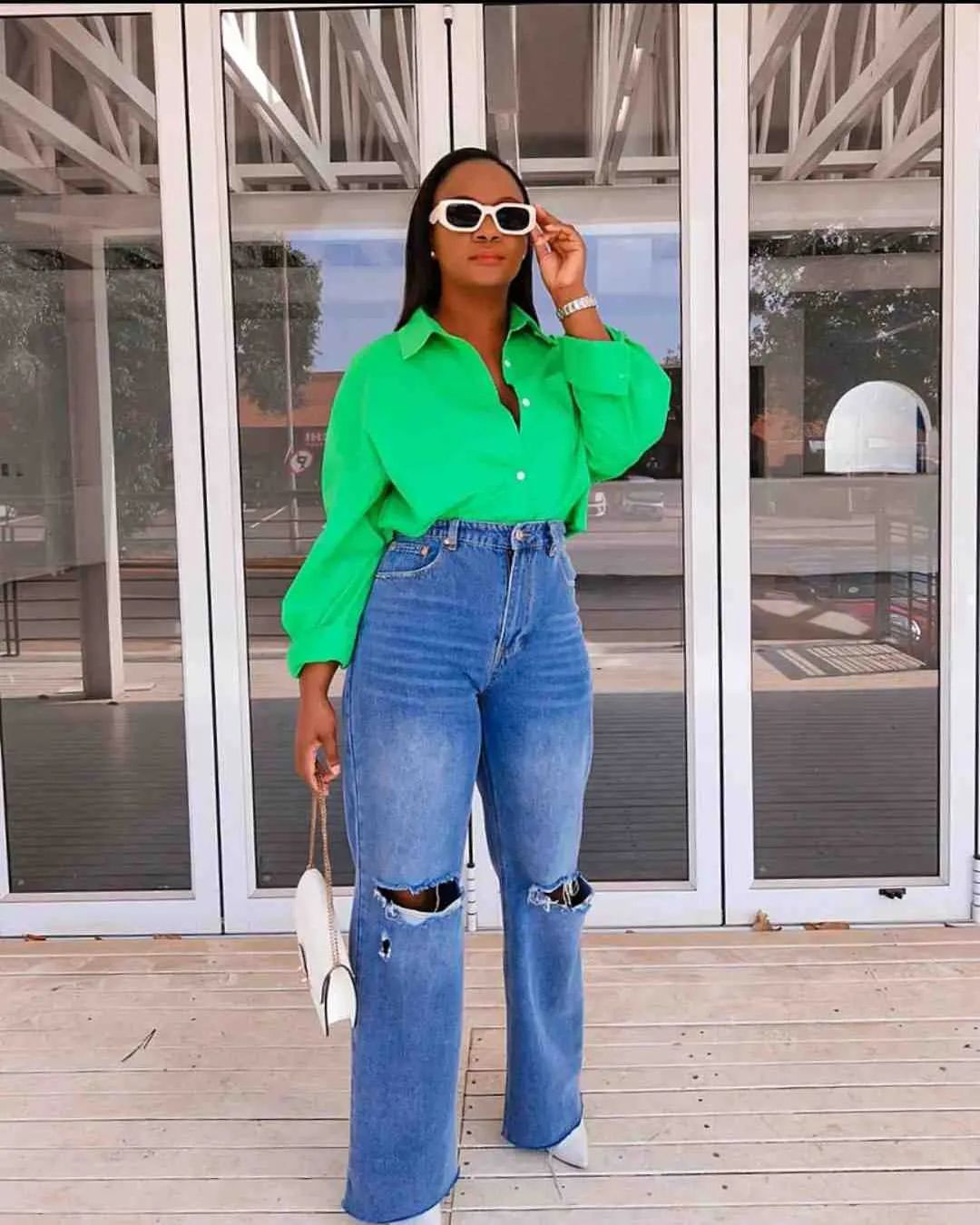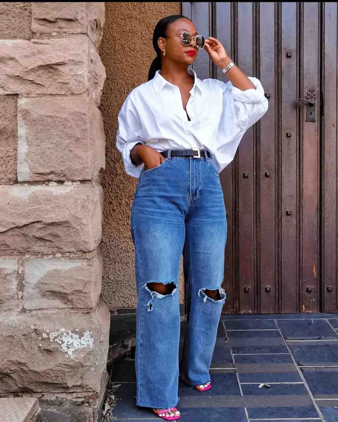 7. Distressed Jeans for an Edgy Touch: Distressed jeans add an edge to any outfit. Pair them with a simple tee and sneakers for a laid-back look, or heels and a blazer for something more sophisticated.