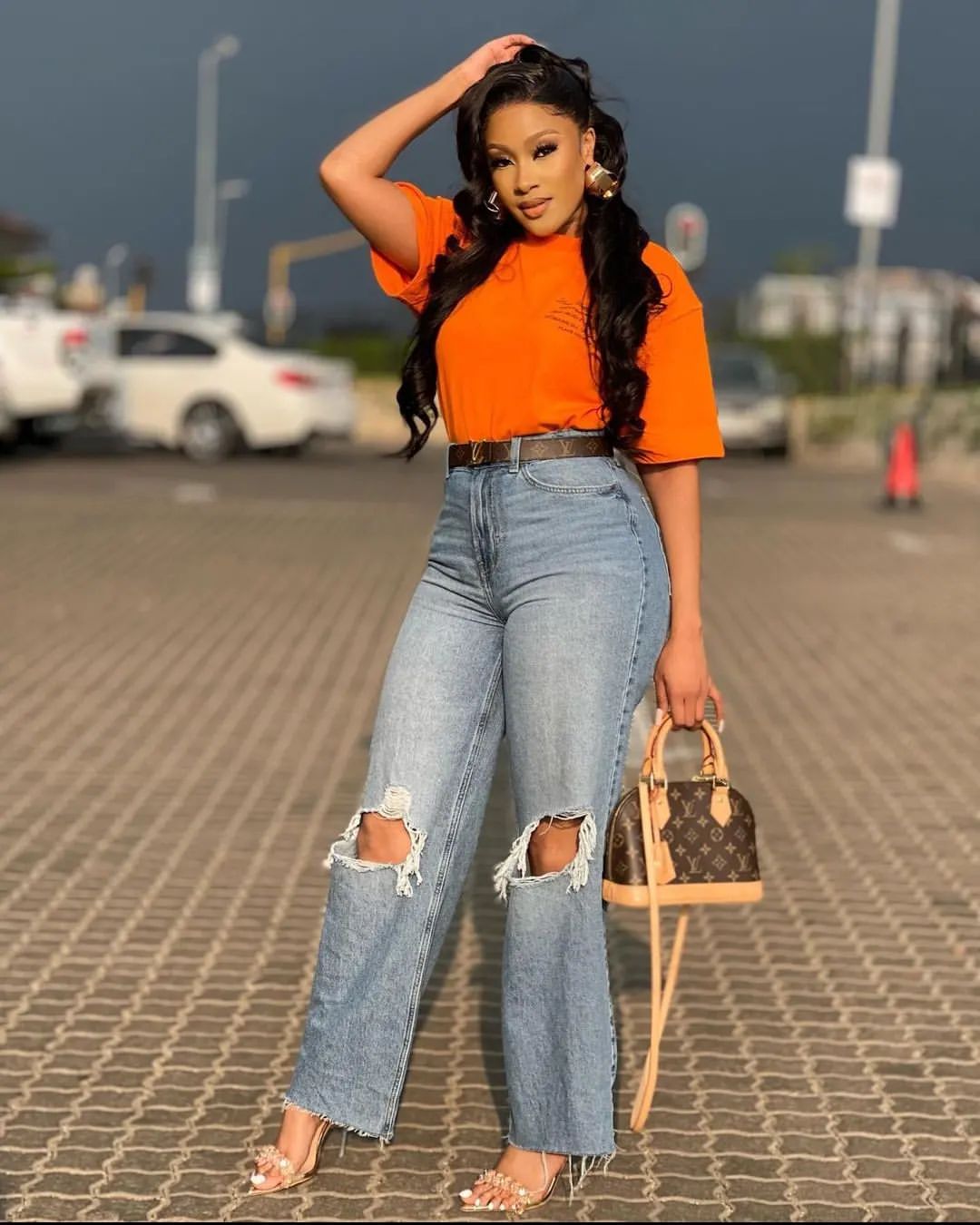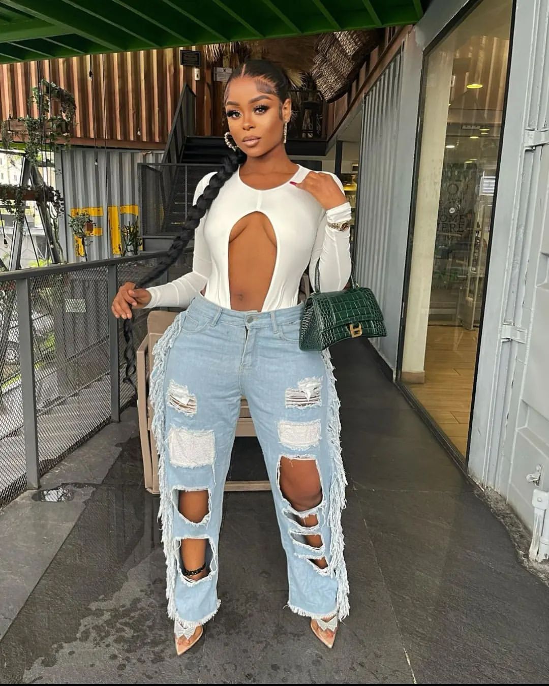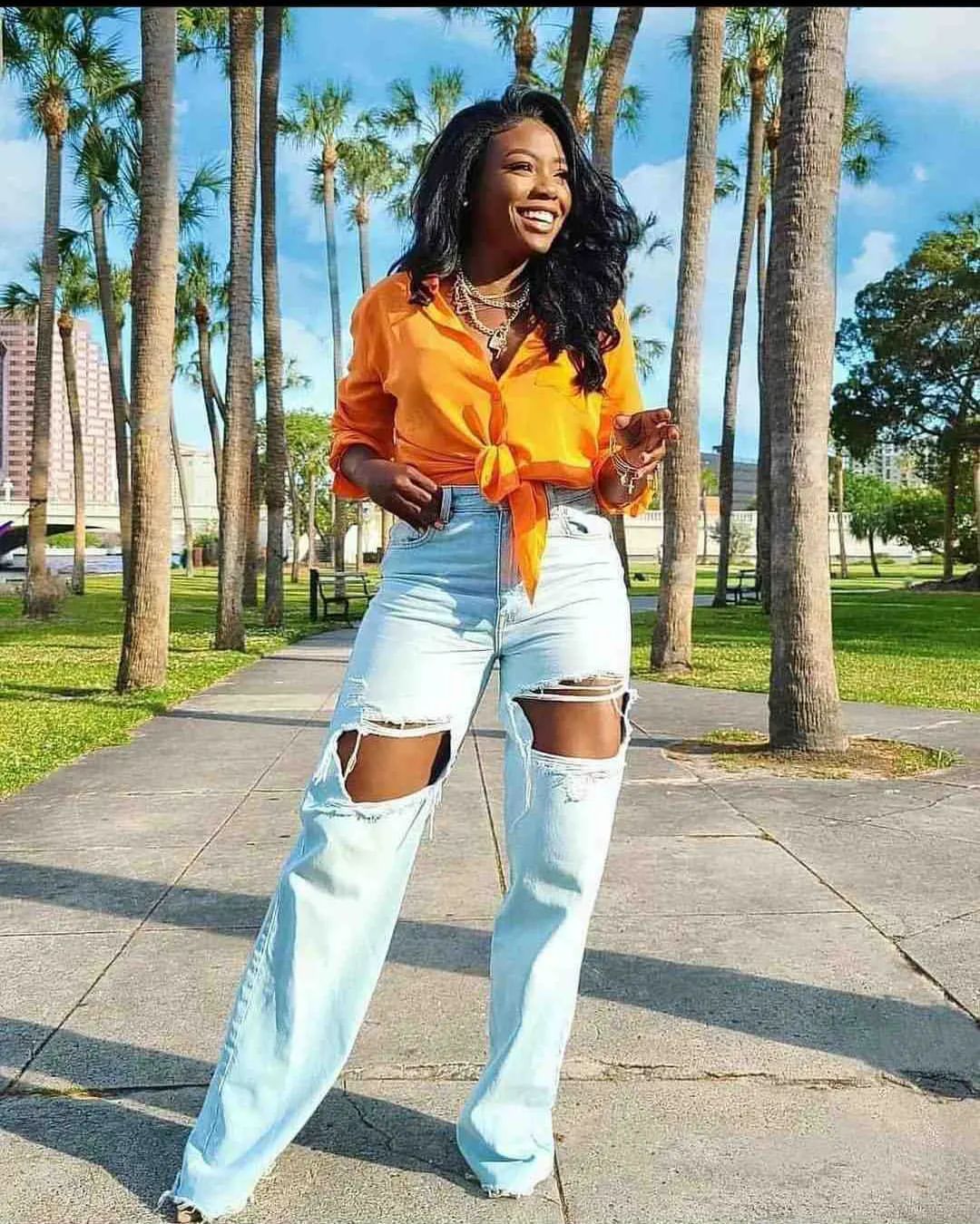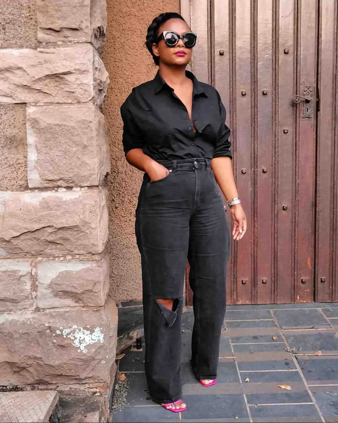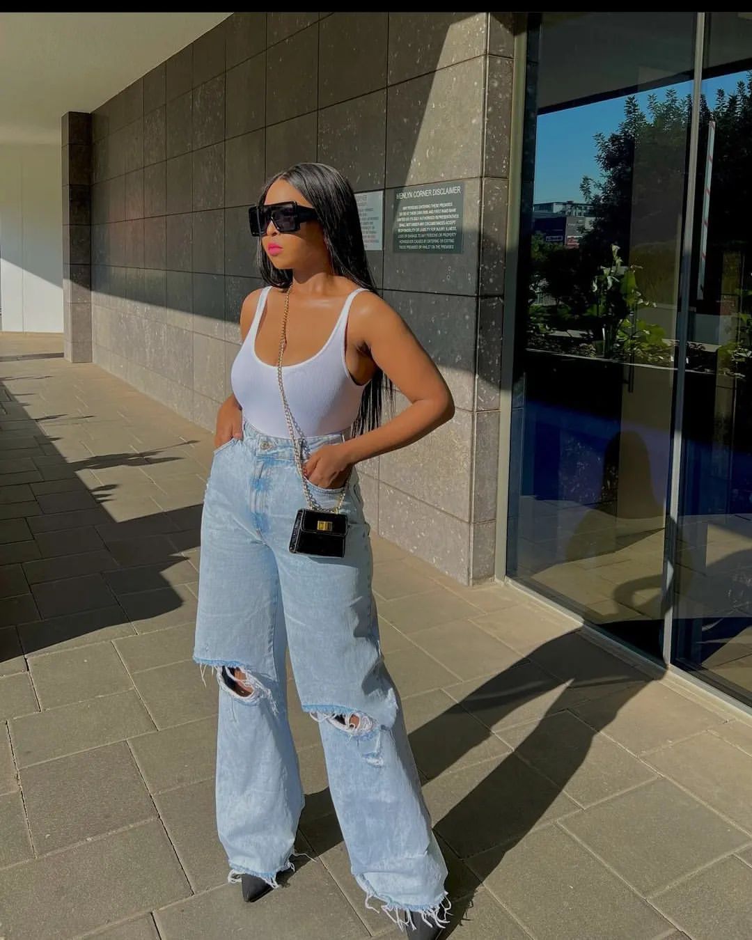 7. Distressed Jeans for an Edgy Touch: Distressed jeans add an edge to any outfit. Pair them with a simple tee and sneakers for a laid-back look, or heels and a blazer for something more sophisticated.