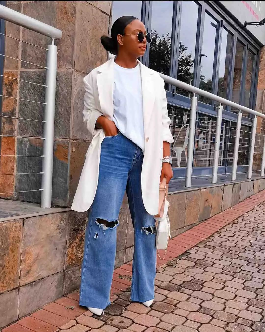 1. The Classic Blue Jean with a Chic Blazer: Pair your favorite blue jeans with a tailored blazer for a look that’s effortlessly chic. Perfect for a casual day at the office or an evening out.