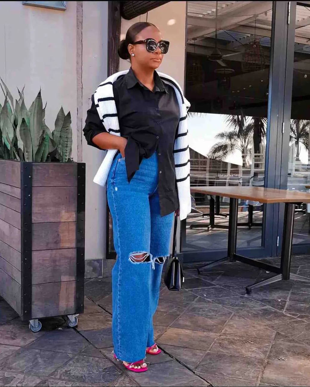 3. Boyfriend Jeans with a Cozy Sweater: For a relaxed yet stylish ensemble, match boyfriend jeans with a cozy oversized sweater. Ideal for weekend brunches or coffee dates.