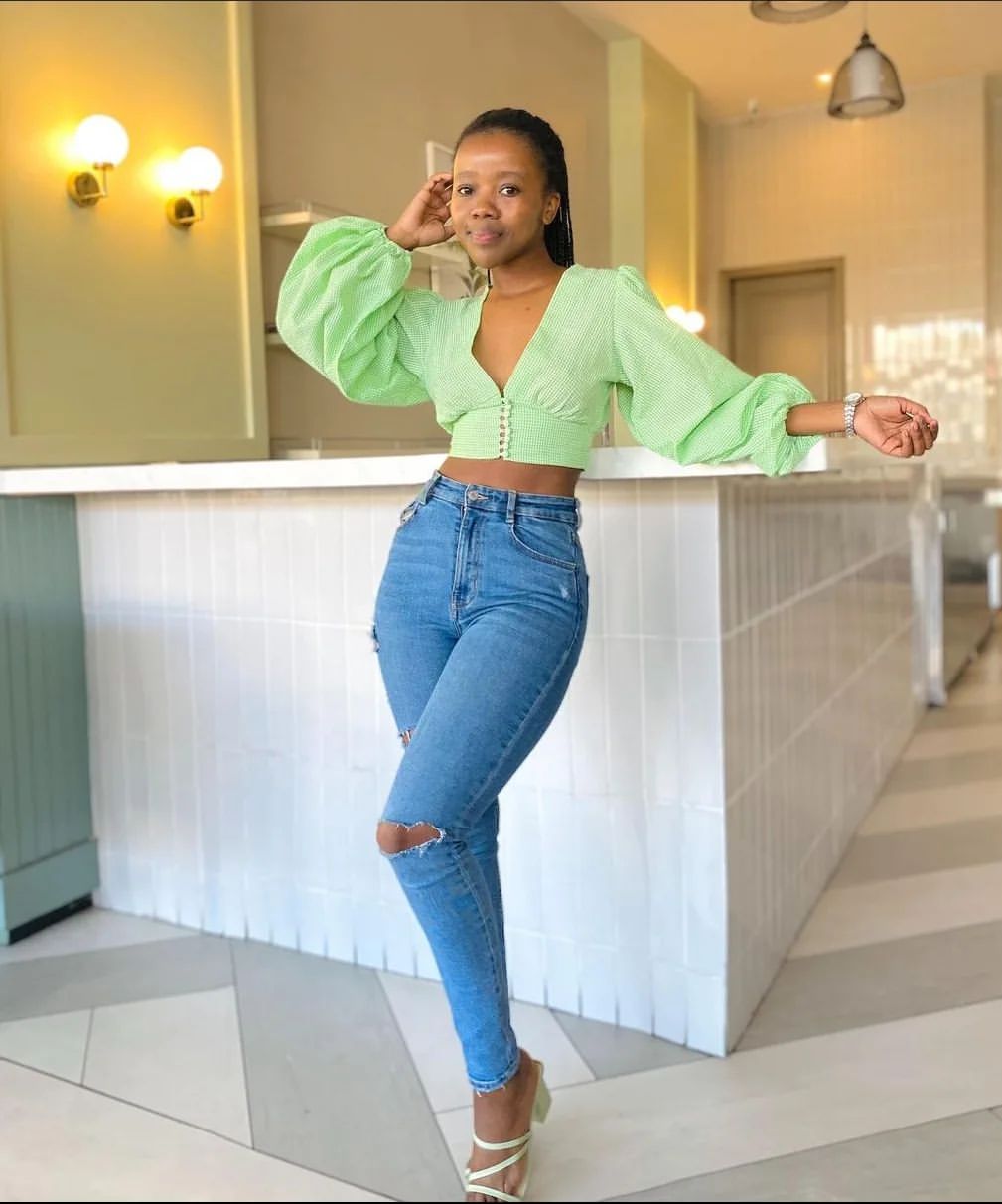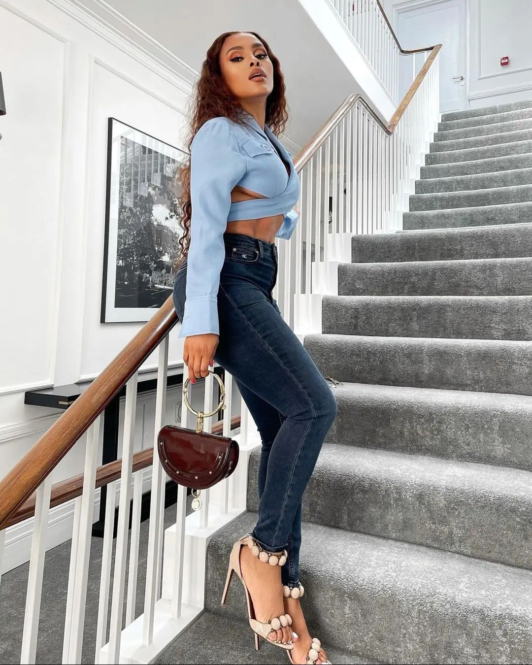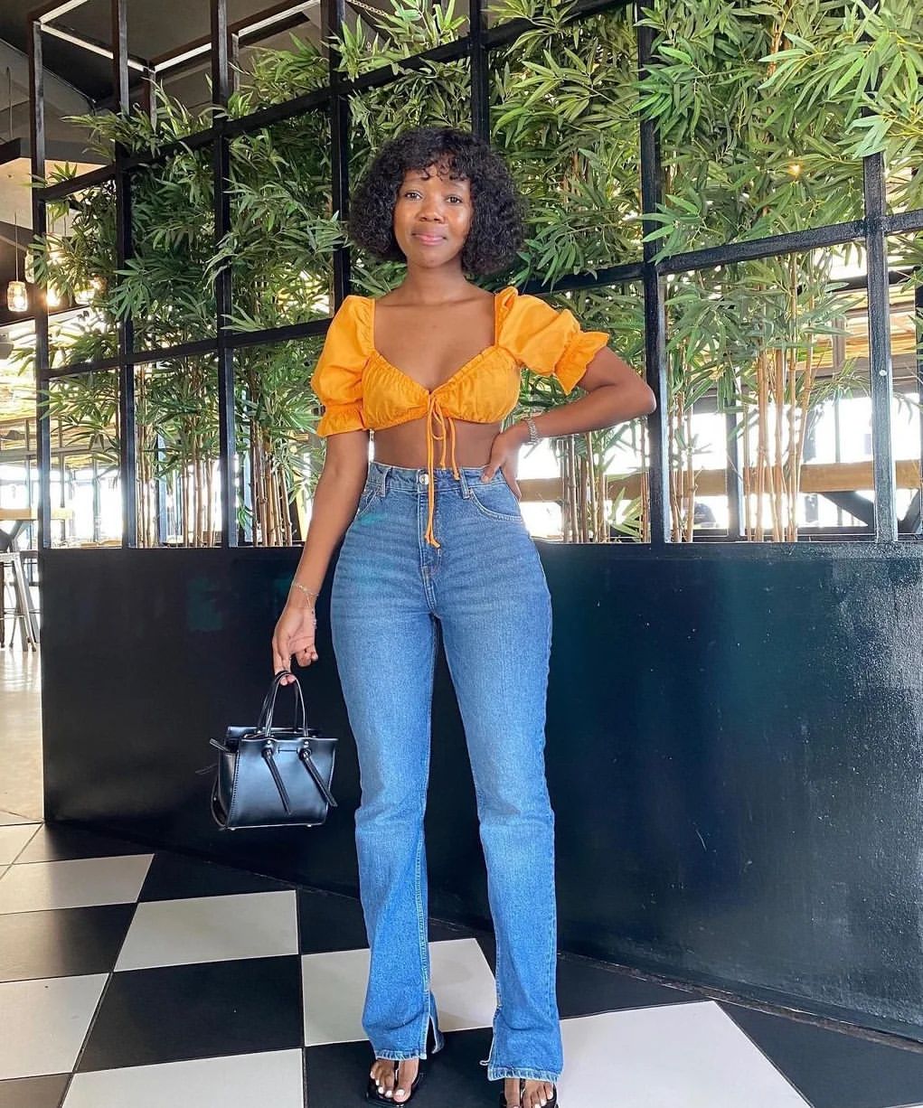 2. High-Waisted Jeans and Crop Tops: Combine high-waisted jeans with a crop top for a trendy and youthful appearance. This look works great for casual outings and can be accessorized with statement jewelry.