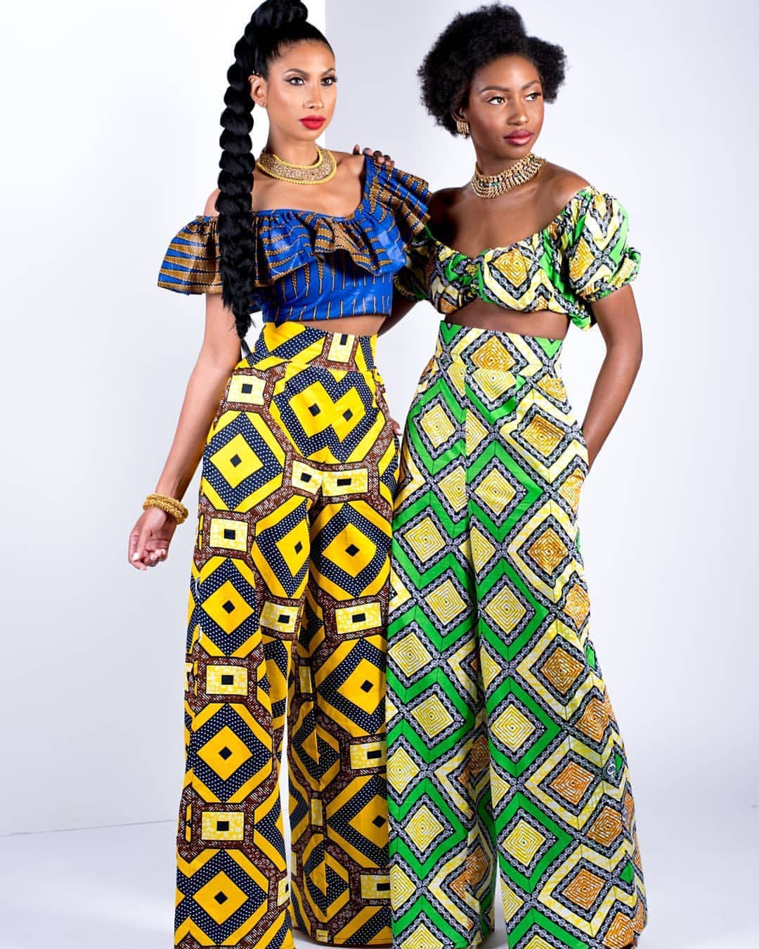 2. Ankara Two-Piece Set: Create a trendy and coordinated look with an Ankara two-piece set, consisting of a crop top and a matching skirt or pants. This stylish combination is perfect for both casual and dressy occasions.