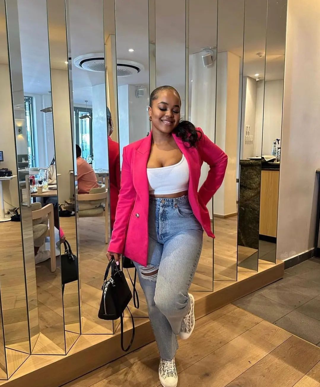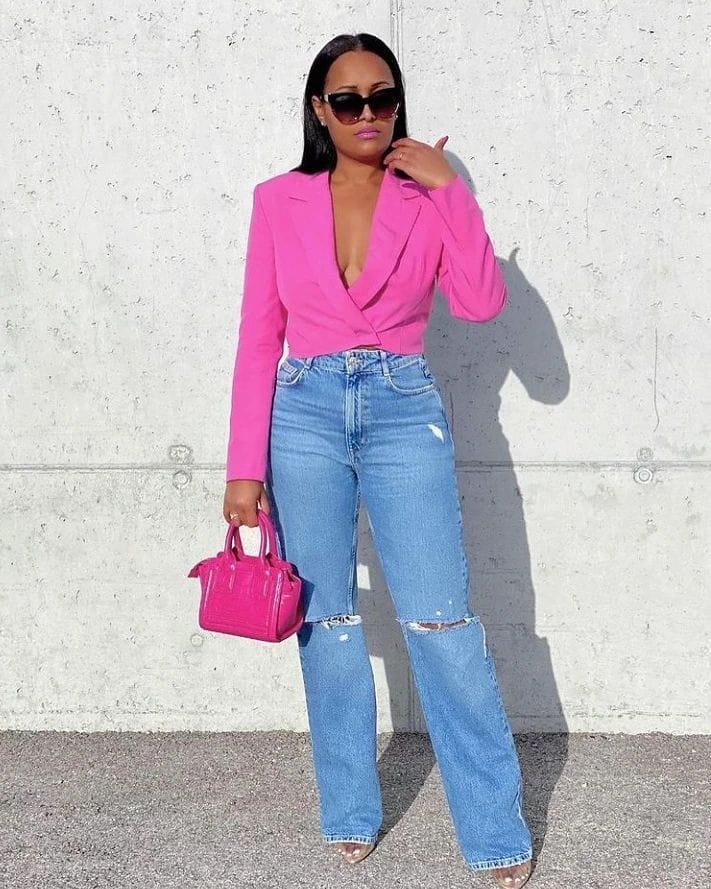 3. Mixing Textures: Pink isn’t just about color; it’s also about texture. Combine a silky pink top with rugged denim or leather pants for a look that’s both edgy and elegant. It’s a perfect way to add depth to your outfit.