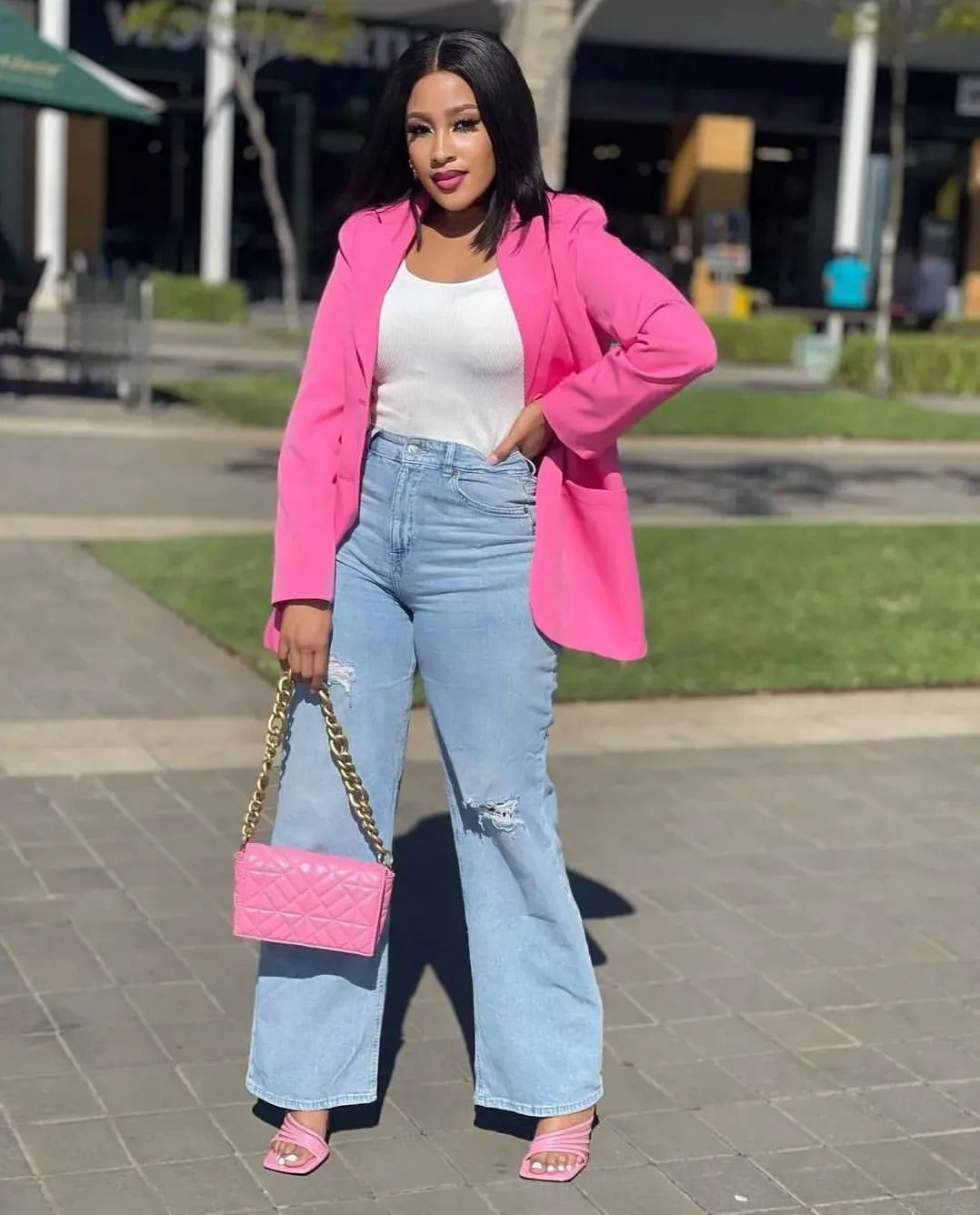 7. Casual Elegance: Pair a tailored blazer with distressed jeans and ankle boots. This combo strikes the perfect balance between casual and sophisticated, making it ideal for a stylish dinner date.