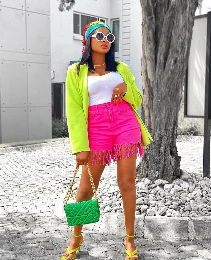 6. Bold Stripes and High Waists: Combine a striped off-shoulder top with high-waisted shorts or culottes. This dynamic duo is perfect for a summer picnic or a rooftop brunch.