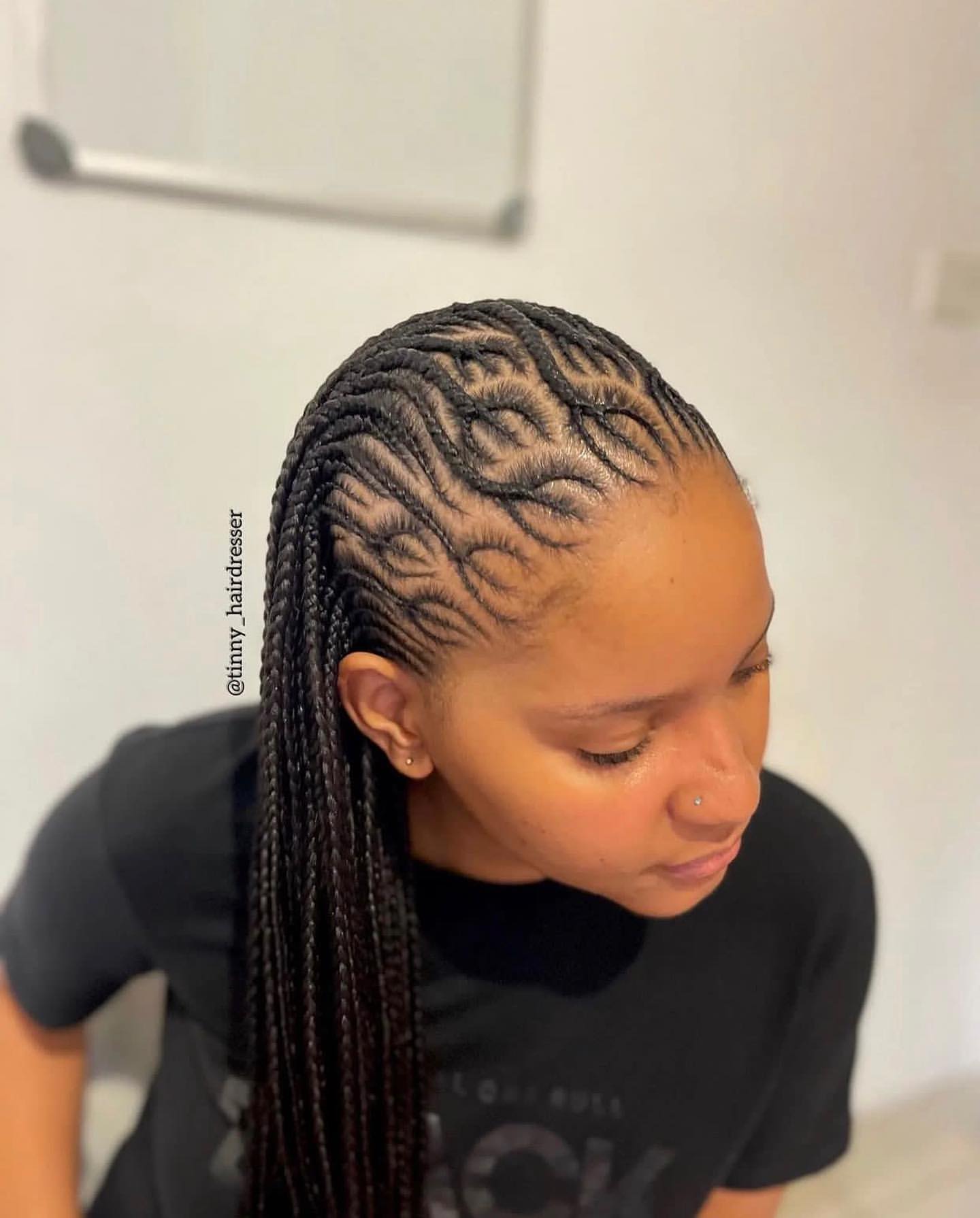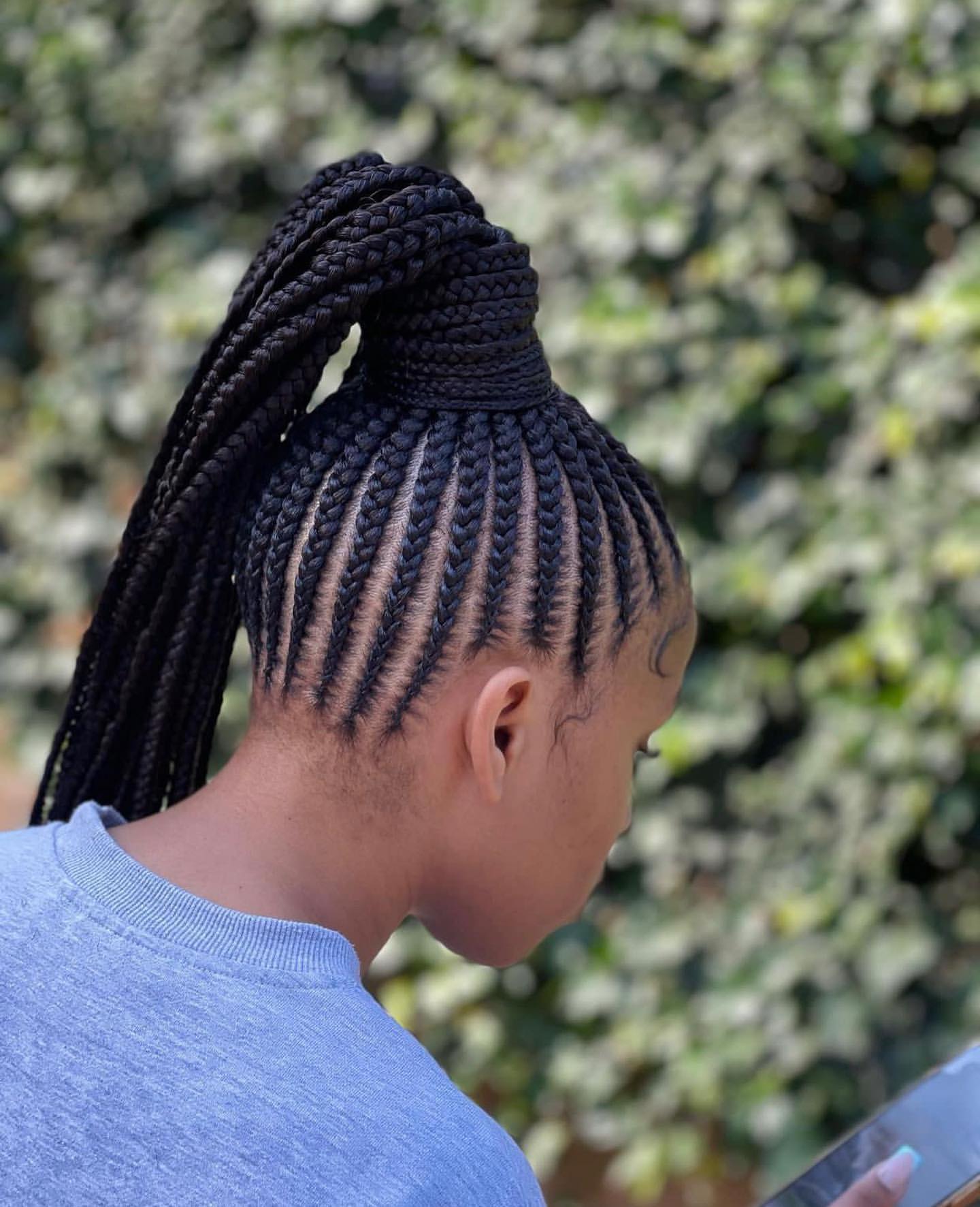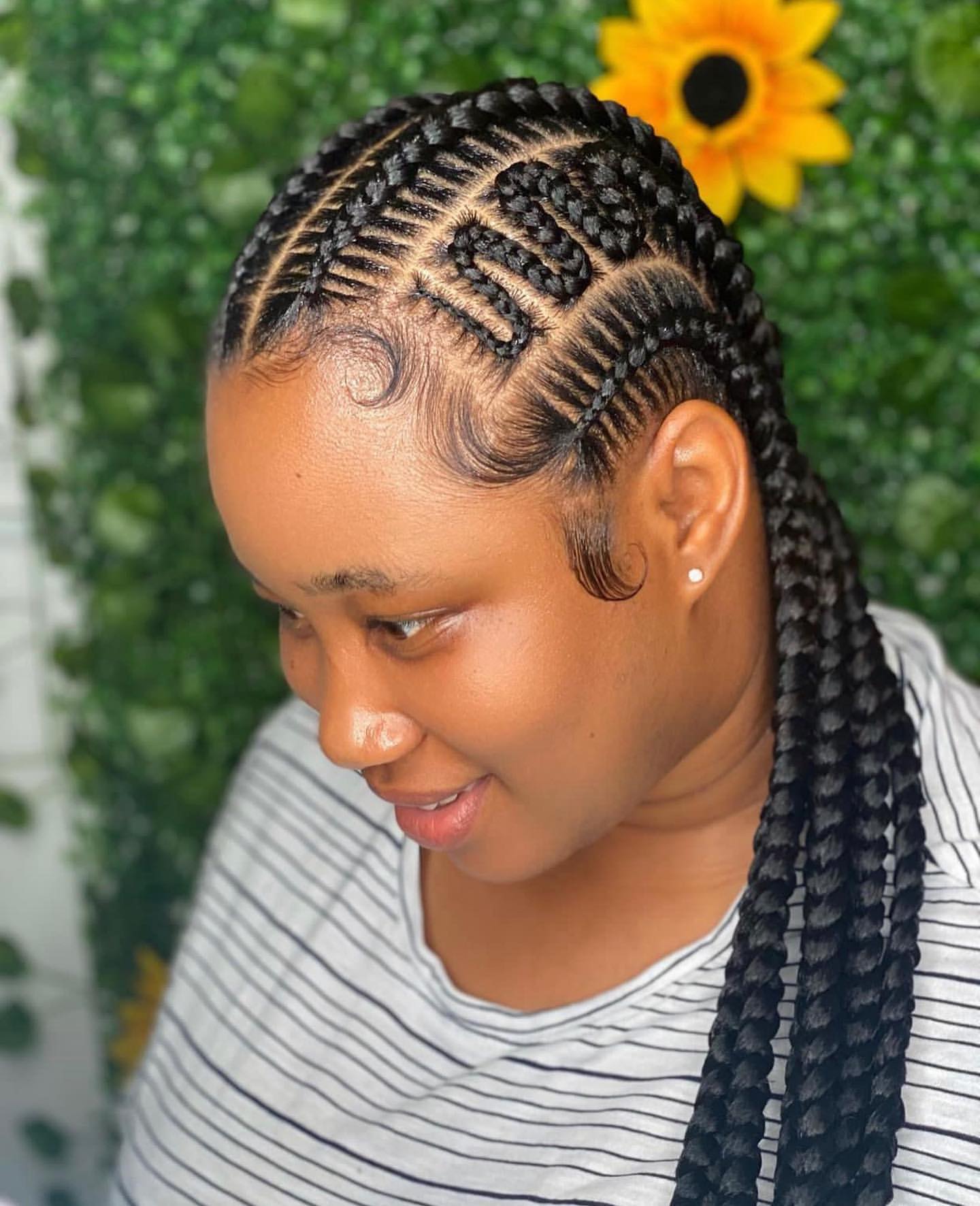 2. Ghana Braids: Known for their unique and intricate patterns, Ghana braids are a staple in African hairstyling. In 2024, these braids are all about bold and creative designs, ranging from classic straight back styles to elaborate curved patterns, often adorned with beads or metallic accessories for an extra pop.