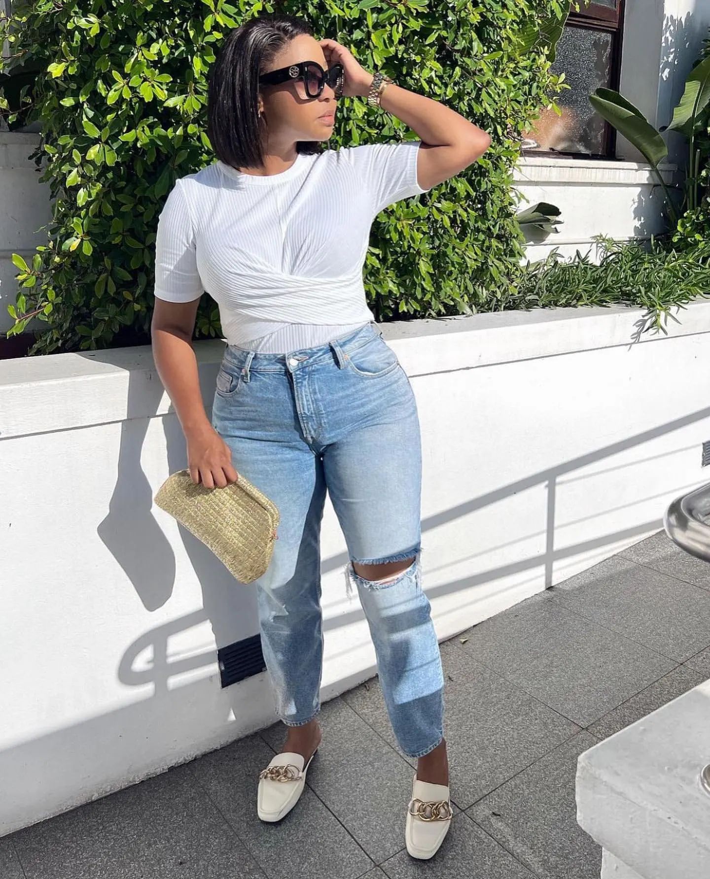 You can never go wrong with a pair of well-fitted jeans and a comfortable t-shirt. Elevate this classic look with a statement belt and stylish sneakers.